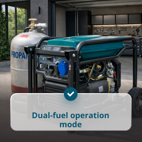 • Dual fuel capability (gasoline and gas) provides maximum flexibility, allowing you to choose the most affordable or cost-effective fuel, reduce operating costs, and maintain power supply even if one fuel type is limited.