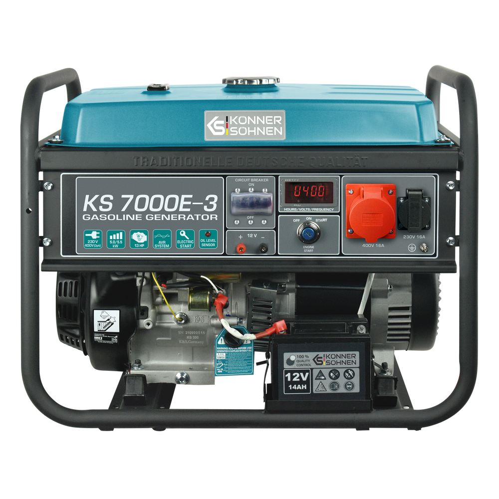 “Könner & Söhnen” generators are equipped with an enlarged steel fuel tank, which extends the generator’s operating time without refueling. The fuel level indicator is located on the tank for ease of use.
