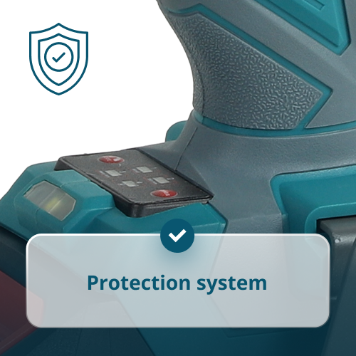 • The protection system ensures safety for both tools and user, including overheating, overload, and over-discharge protection.