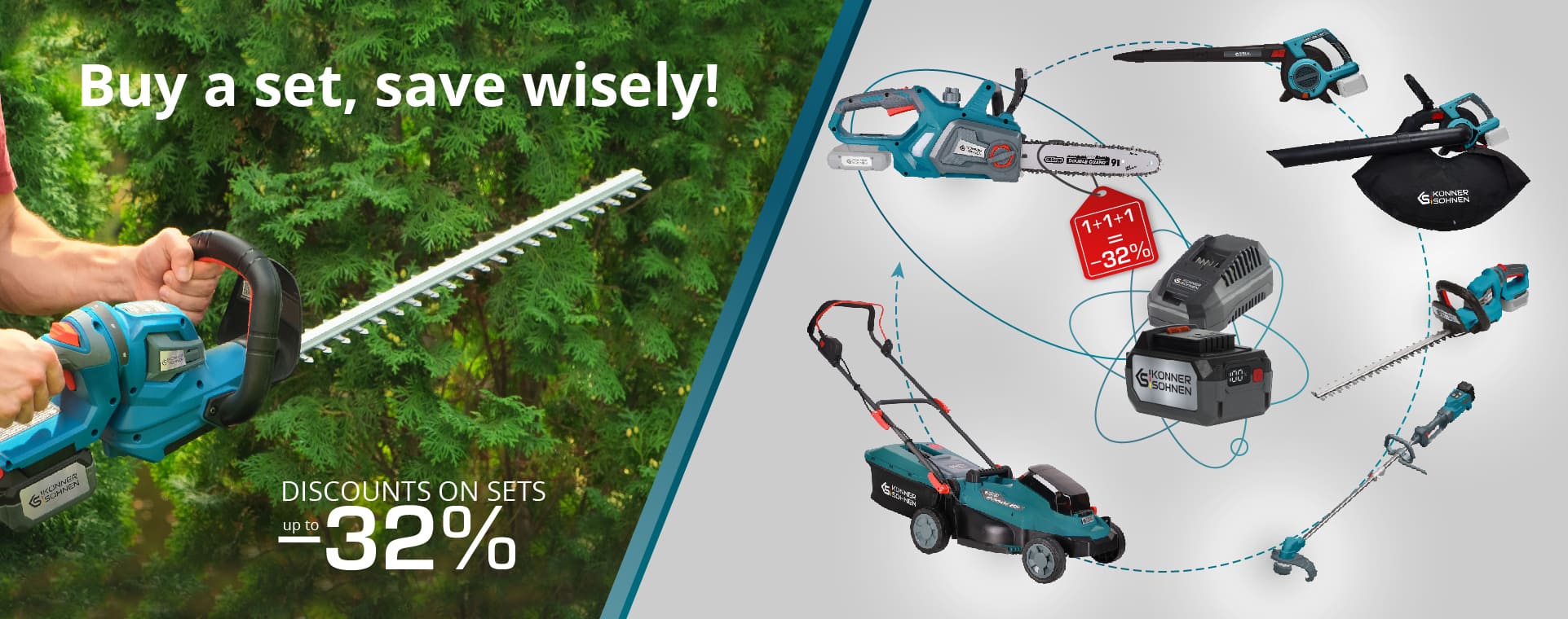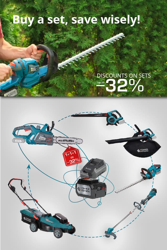 Įsigykite savo tobulą rinkinį dabar ir sutaupykite iki 32%! Toliau taupykite ateityje tiesiog pridėdami sezoninius įrankius, kurie puikiai veikia su ta pačia baterija.