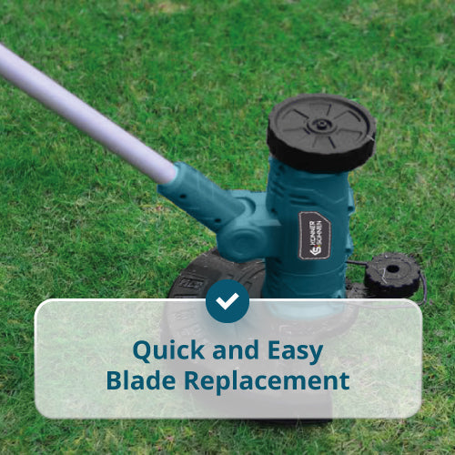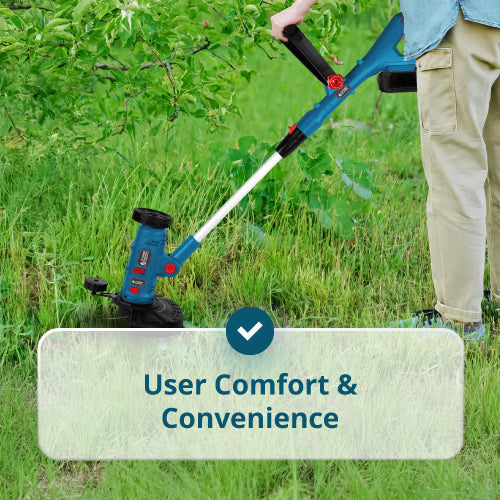 • Teleskopinio veleno užraktas — leidžia lengvai reguliuoti veleno ilgį ir perjungti pjovimo bei kraštų apipjovimo režimus.